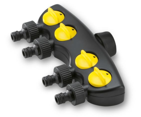 Pålidelige haneforbindelser, slangeforbindelser og slanger er afgørende for et effektivt vandingssystem. Kärcher tilbyder et komplet udvalg af tilbehør til tilslutning, frakobling og reparation af vandingssystemer. For eksempel 4-vejs hanetilslutningen til haner med 1″ gevind og 3/4″ reduktion. Til brug af op til fire slanger samtidigt. Fire-vejs haneforbindelsen har fire haneforbindelser med fire separate muligheder for uendelig flowkontrol. Denne højkvalitets universalforbindelse med indvendigt messinggevind er velegnet til alle standard haveslanger og er ergonomisk designet til nem håndtering. Det robuste indvendige gevind af messing med gevindbeskyttelse sikrer nem tilslutning. Hanetilslutning kompatibel med de tre mest udbredte slangediametre og alle tilgængelige kliksystemer.