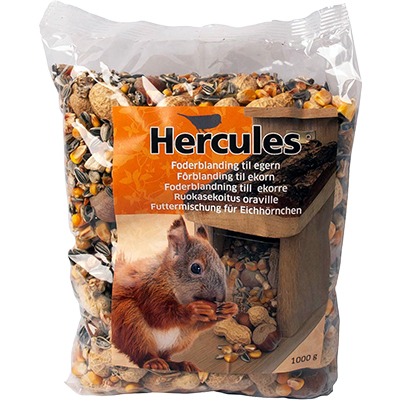 Foderblanding til egern. Perfekt tilpasset til egern. Indeholder hele nødder. Kan gives året rundt, men især om efteråret, hvor egernet samlet forråd.