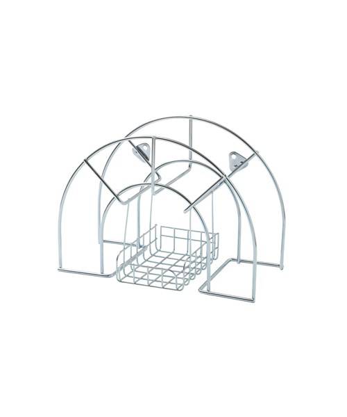 Slangeholder i galvaniseret tråd konstruktion til vægmontering. Opbevaringskurv under holderen, hvor tilbehør kan opbevares.