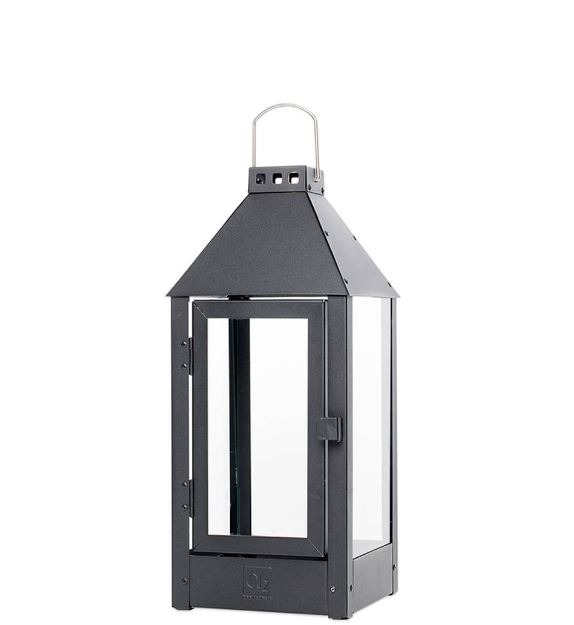 Lanternen er fremstillet i kraftig galvaniseret plade (0,8 mm) og glasset har en tykkelse på 3 mm. Hængsler, nitter og håndtag er i rustfrit stål. Med disse velovervejede valg af solide materialer og en løbende produktudvikling igennem det seneste årti, hvor al unødigt er skåret væk og kvalitet samt brugsværdi er sat i højsædet, er slutproduktet her en lanterne i højeste kvalitet. Vi kan selvfølgelig ikke garantere at lanternen holder evigt, men den holder markant længere end den gennemsnitlige lanterne på markedet. Slut er det derfor med at udskifte dine lanterner flere gange årligt!