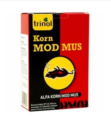 Alfa Korn mod mus er et særdeles effektivt middel mod mus. Aktivstoffet påvirker musen med sin bedøvende effekt, hvorved musen falder i en dyb søvn og roligt sover ind. En skånsom måde at bekæmpe mus på. Aktivstoffet alphachloralose er indkapslet, hvilket medfører en rigtig god velsmag og ædelyst, idét musen ikke fornemmer kernerne er farlige. Effekten indtræffer forholdsvis hurtigt efter, at musen har indtaget en passende mængde Alfa Korn.